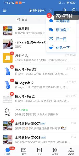 例如:客户A属于企业微信员工1,那么群分享列表就只展示企业微信员工1的群,不会展示企业微信员工2的群,并且展示的群都是共享状态的。